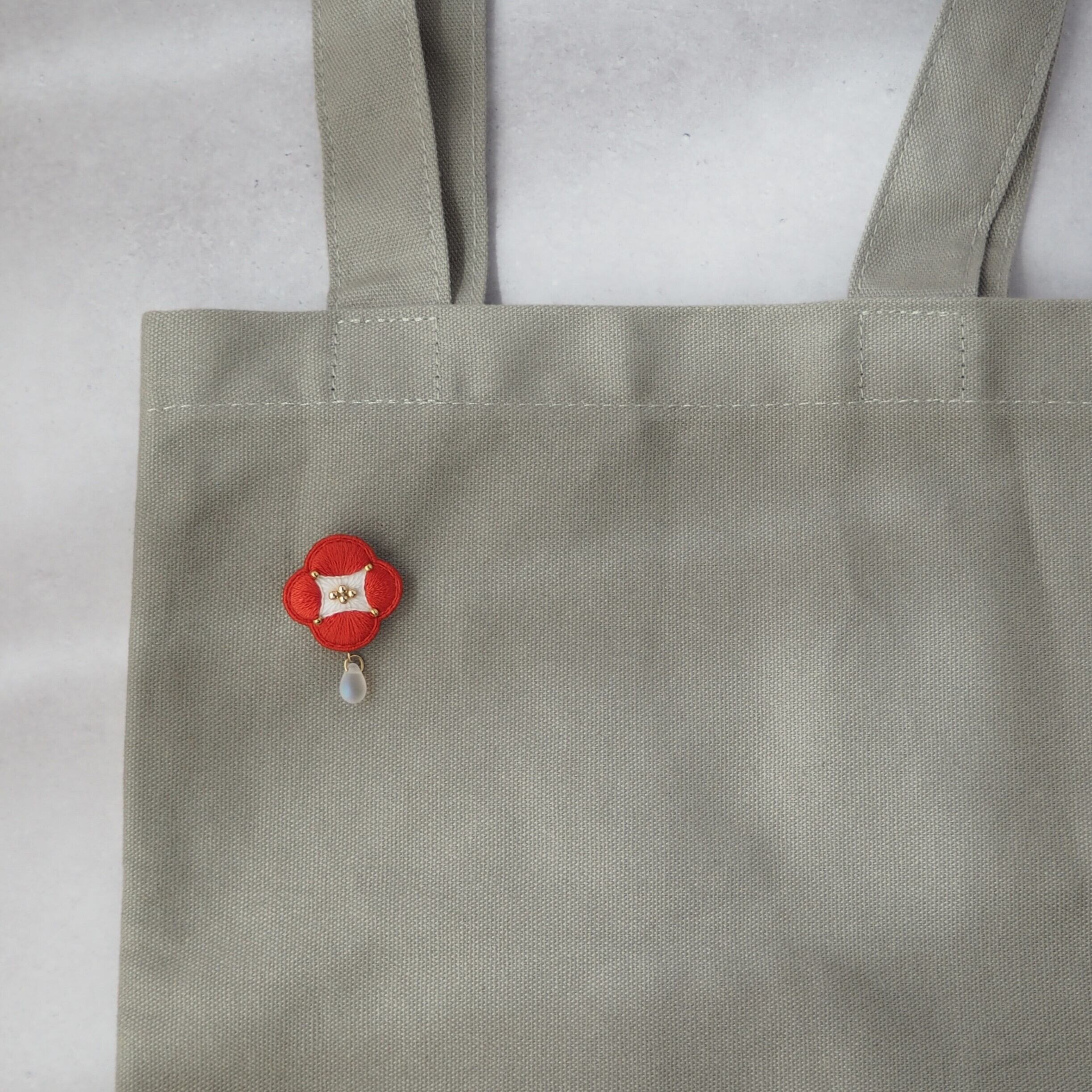 手刺繍にて仕立てたブローチ。